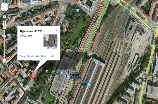 Učebny se nachází ve středu Prahy, 200 m od Václavského náměstí. Ve vzdálenosti několika desítek metrů je stanice metra linky C - Hlavní nádraží a zároveň jedno z praských železničních nádraží. Do 2 minut chůze jsou dostupné i tramvajové linky. Z Florence metro C (směr Háje), výstup Hlavní nádraží. Z Hlavního nádraží 5 minut chůze.